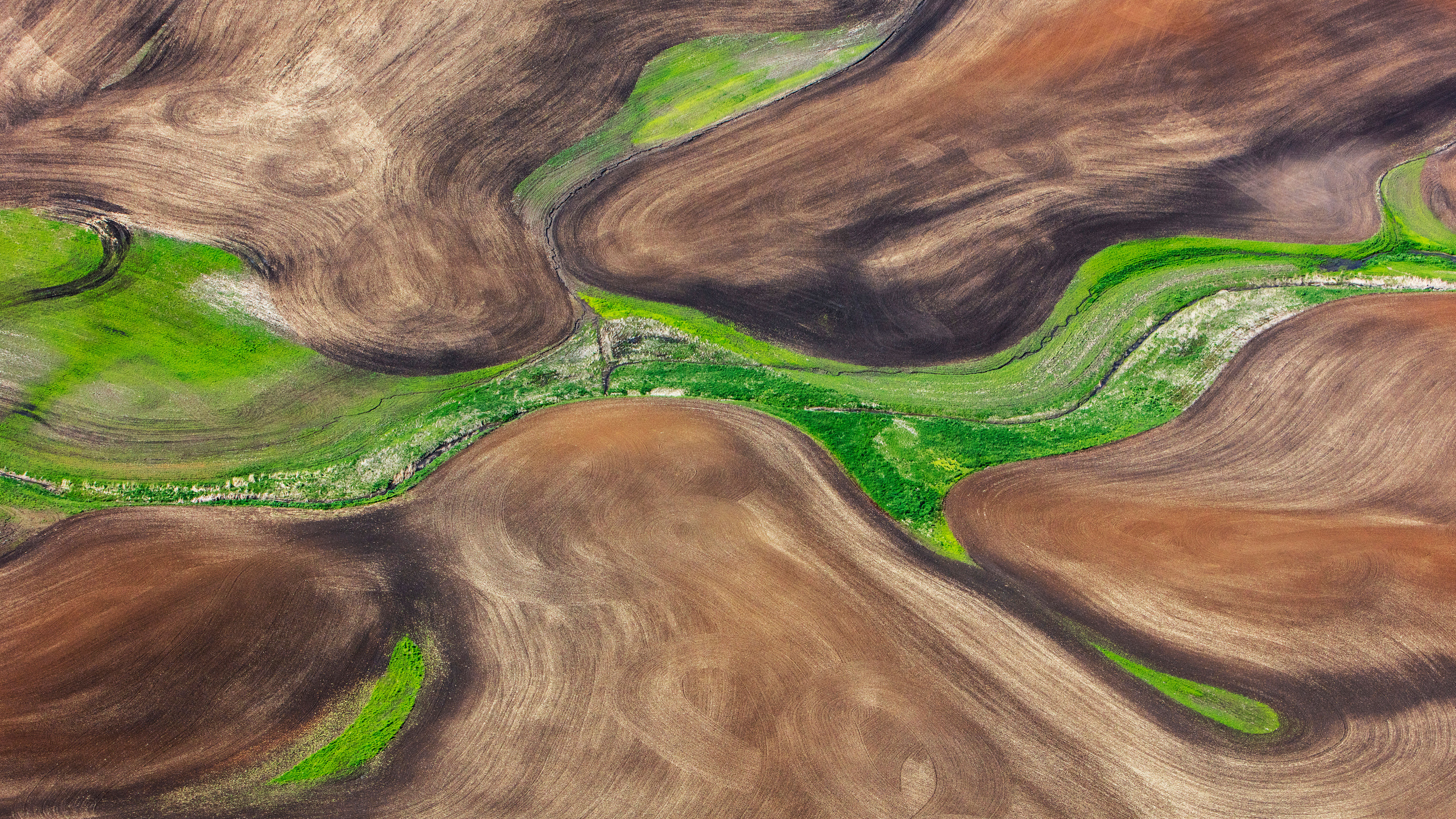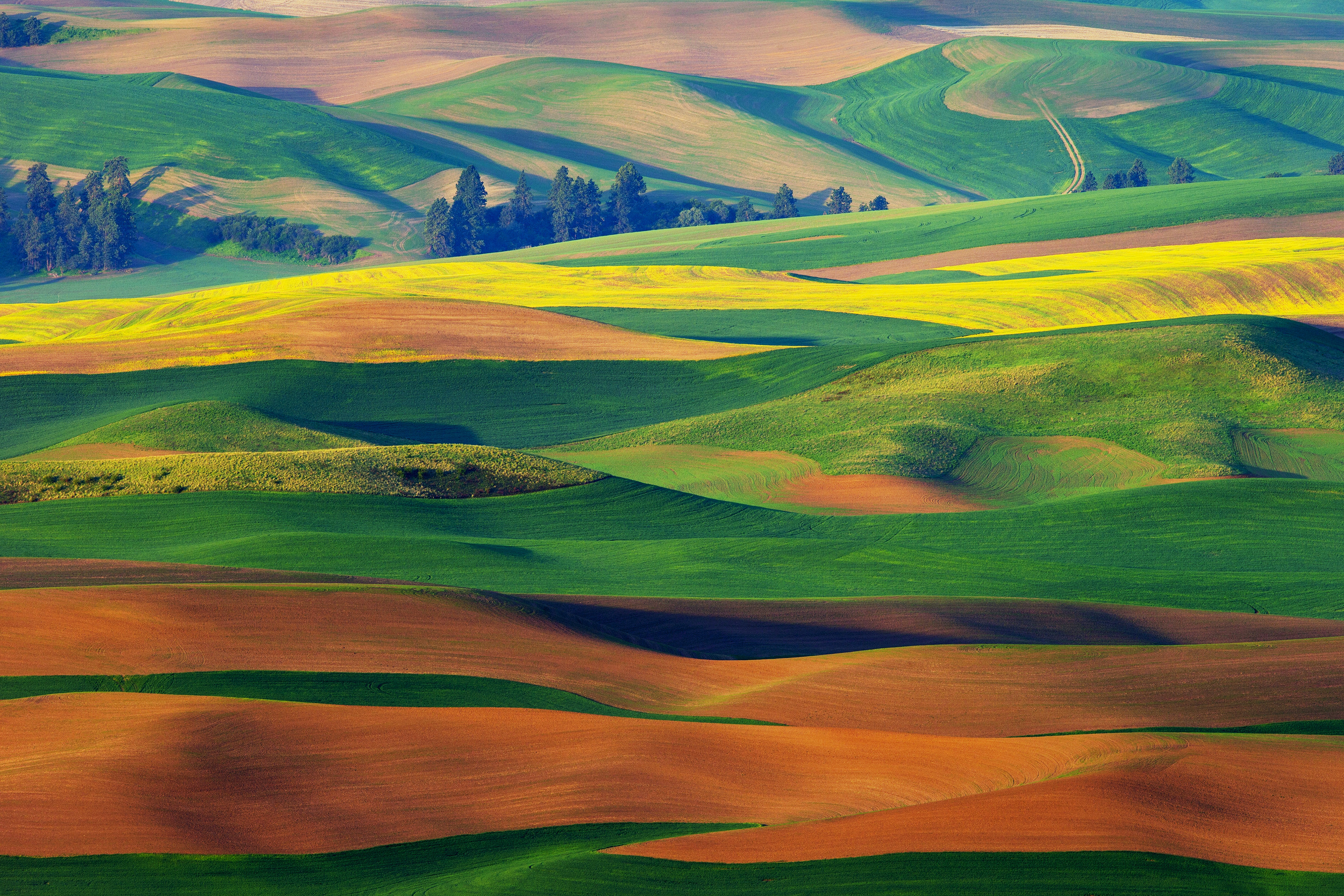 The climate of the Palouse is harsh in the Winter, but Spring brings sunshine, abundant rains, and mild days which are perfect conditions for farmers who grow many types of crops each with their own colour palette.