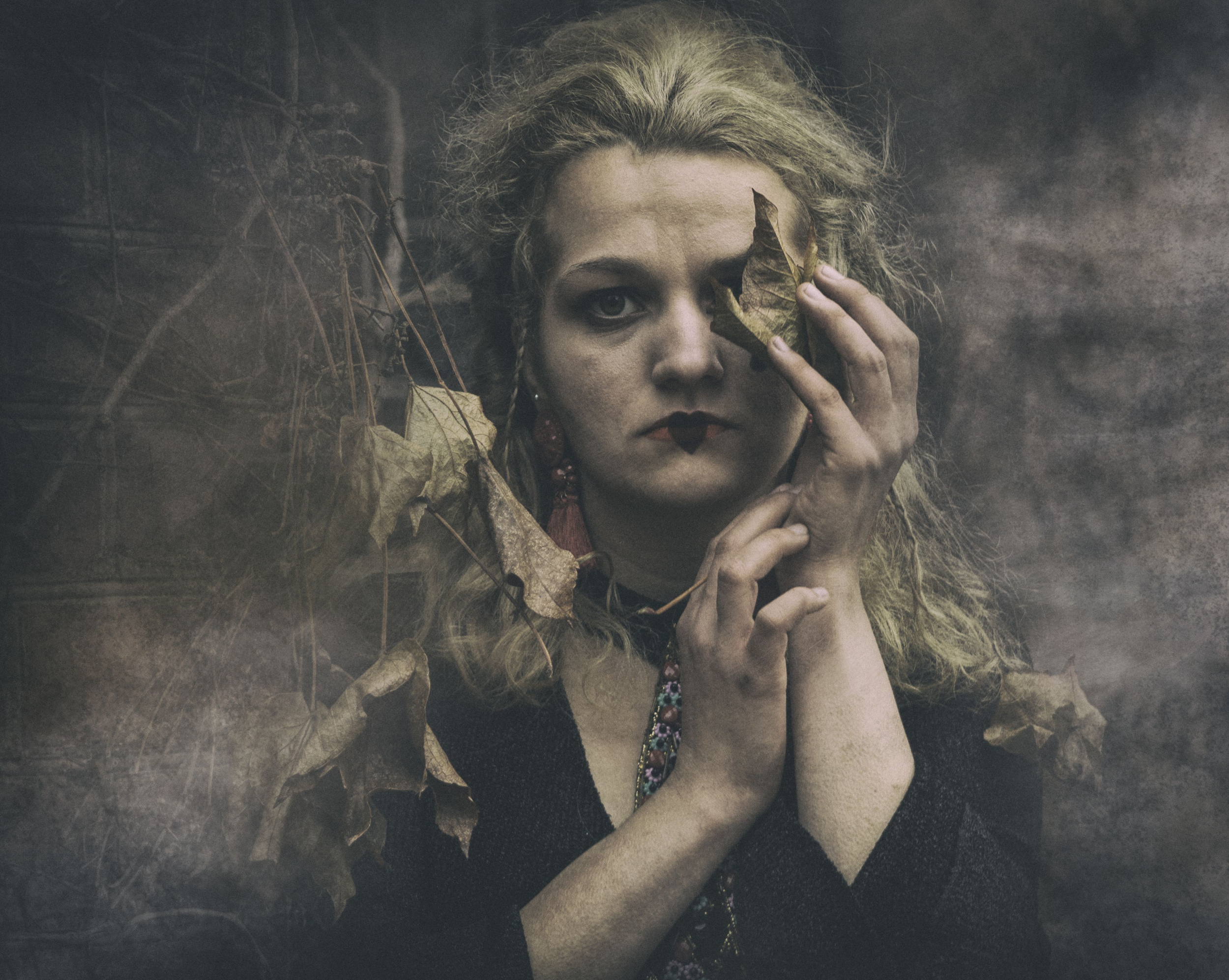 My portraiture work began to take many forms other than just ordinary portraits started which bored me a bit. It started with little steps becoming bolder and bolder. Simply by looking at a face in a portrait, a different image of a given character was already sprouting in my imagination. I like to use various elements to achieve that goal. My favourite elements are plant ornaments, trees, flowers and branches.