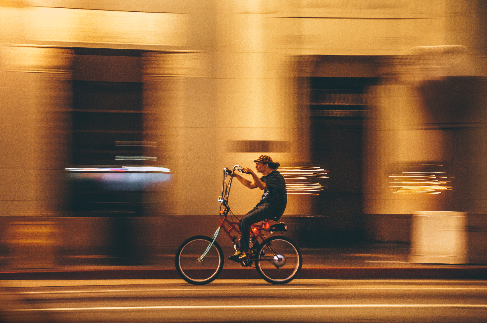 Motion panning technique is great to use when it is already too dark to freeze the movement. You can take photos with a relatively low ISO value because you must lengthen the exposure time to pull along anyway.